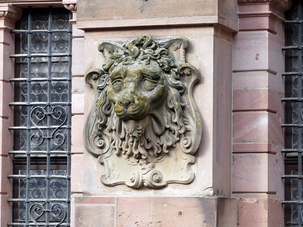 These lions are on the back facade of the Friedrichsbau. They are all in a row between the windows, and not one is like the other.