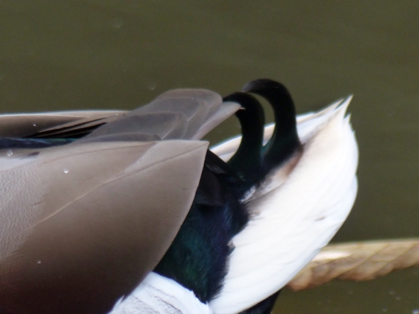 Before taking photos I had never noticed that curlicue at the tail of male mallards. It is quite distinct and rather pretty, probably with no other function than impressing the female of the species.