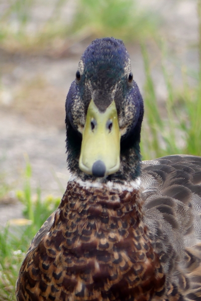 Nutty duck: Walnut and almond coloured feathers offest by emerald and indigo.