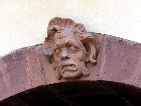 There are strange looking faces decorating the capstones of various gateways of the Mannheim Palace. This one got my particular attention. What has the old biddy so embarrassed that she is biting her lip so desperately?