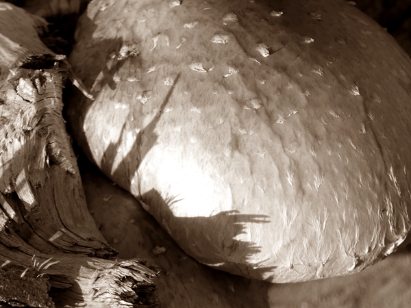 Big bird. Small bird. Pensive cat (probably thinking about birds). Two mushrooms. One leaf. Simply Gras. And its shadow. Cee’s Midweek Madness Challenge: Café Latte Colour