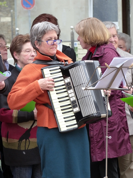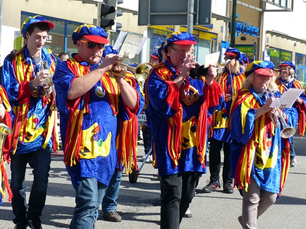 This colourful group, called the Pantoffelgugge, are the musical troupe of a local carnival club. They have their big moments during the carnival season in winter but they take part in other local traditions. This picture was taken a few years ago at our local spring parade. Their style of music is quite unique, this is how the English wikipedia describes it: “It is a strongly rhythmic music of distinctive style played with brass instruments, pipes and drums. Although melodies remain clearly recognizable, they are at times played “off-key”, intentionally and often quite skillfully. Driven by a dominant rhythm section, the music sounds twisted and thrilling, very danceable and perfect for spontaneous street concerts during the “wild days” of Carnival.”