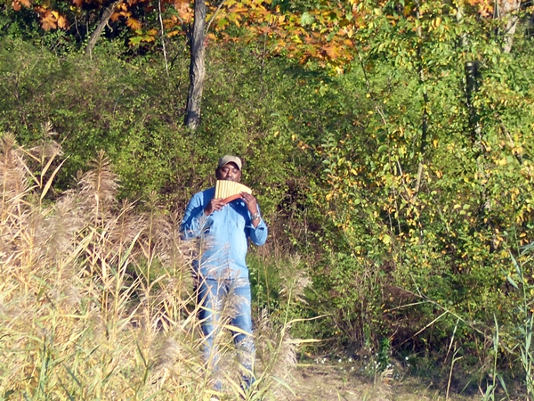When on a visit to a local small lake last autumn the atmosphere was magically transformed by the eerie and very beautiful notes coming from this man playing his pan flute. I took the picture from the opposite bank.