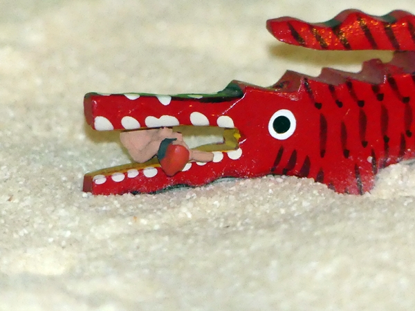 A relentlessly hot sun was beating down on the desert sand which had been bleached almost to a skeleton white. No living thing could survive here – or so it seemed. And then a movement – a bright red gianormous saurian lumbered through the white sands. In its mouth it carried a naked woman …