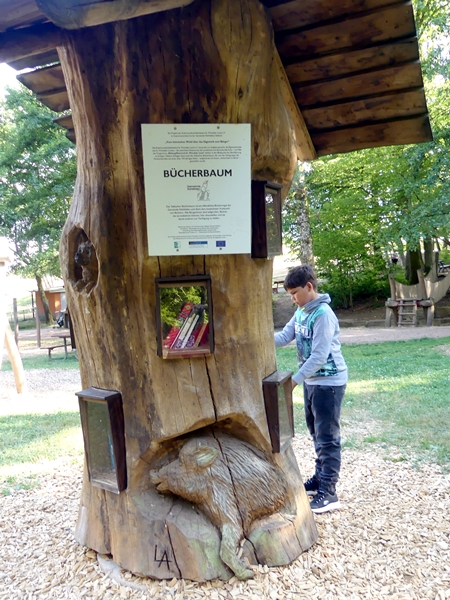 In the Saarland they fashioned tree trunks into open bookshelves where books can be exchanged.