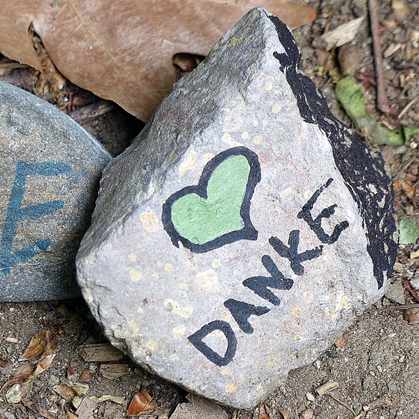 The method may be more traditional, similar to collages done by school children who glue cut-outs from magazines on a large piece of paper, the message unfortunately is very modern. These are all painted pebbles from a pebble snake which was started during the lock down. It is on a walkway where there are always lots of people, particularly on weekends, but during the lock down it was particularly busy – without being crowded. Distancing was always possible. And I felt I had to add a protective umbrella as my own message.