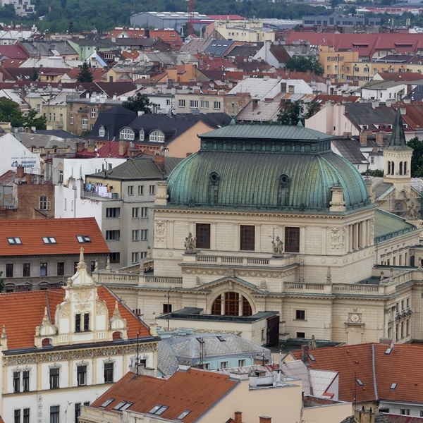 Yesterday I showed the Great Synagogue of Plzeň. I had climbed up the tower of the Cathedral of St. Bartholomew to take the photo. The spire is with 103 m the highest in the Czech Republic, that’s the whole structure, of course, I was standing a few metres below. The view was amazing, showing a sea of roofs. The buildings get more modern the further you look away from the centre of town. It’s like a history of different pasts.