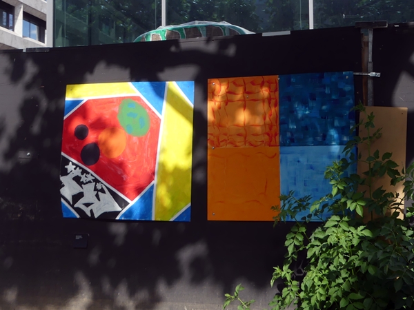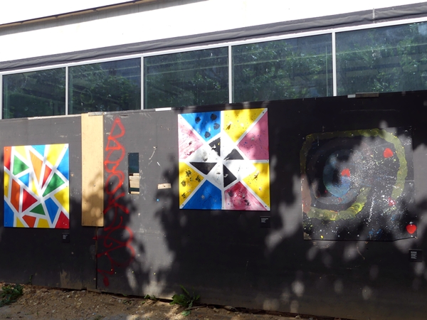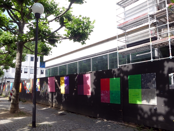 And every now and again these public spaces are used creatively. Like in Wiesbaden. A museum made the bare surfaces into a exhibition called “Abstraktion im Quadrat”. It was a co-operation between artists and various schools.