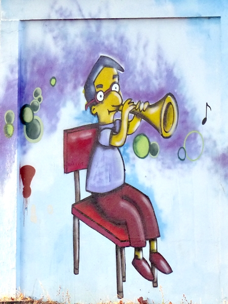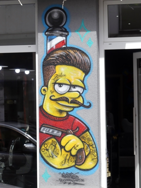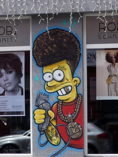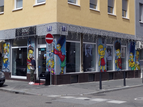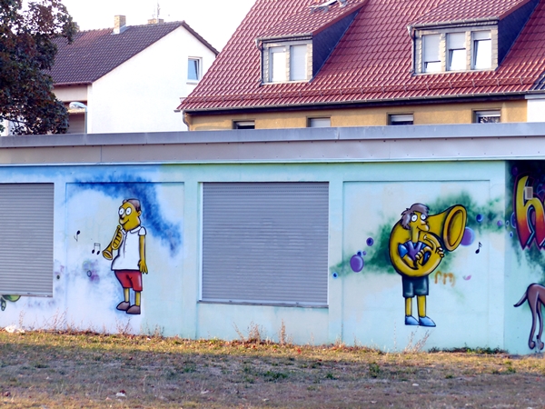 And every now and again these public spaces are used creatively. Like in Wiesbaden. A museum made the bare surfaces into a exhibition called “Abstraktion im Quadrat”. It was a co-operation between artists and various schools.