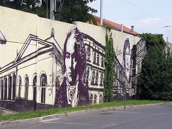 The landmark of Darmstadt can be seen in the middle, a pictorial rendering of the Hochzeitsturm (wedding tower) which is also called the Fünf-Finger-Turm (five finger tower). This tower is a superb example of art nouveau architecture, a work all by itself.