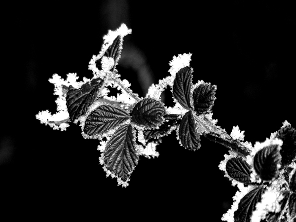 We had a lot of hoarfrost during the past week and it looked enchanting. However, I did not manage to take any decent pictures, not from a distance. So I took what I’ve got, a photo that had the green leaves of a climber and the frosty background, and tried to enhance it. I am not happy with the results but I thought it might be interesting to post unsuccessful one-to-three.