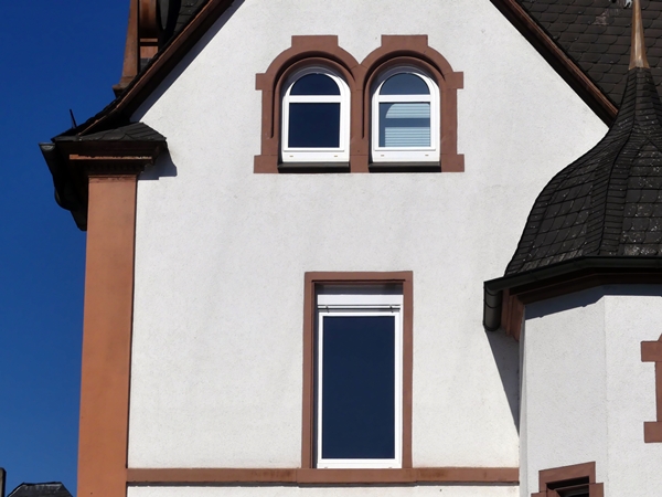 In our area sandstone is widely used in houses, sometimes for the whole building but often as a contrasting material. It is used as a frame for windows from the ornamental to the mundane to utilitarian.