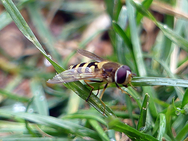 It looks like a dangerous insect. Yet, the black and yellow stripes are only a disguise. But the really typical feature of this syrphus fly (that the American name) is it’s capability to hover in the air, hence the British name.