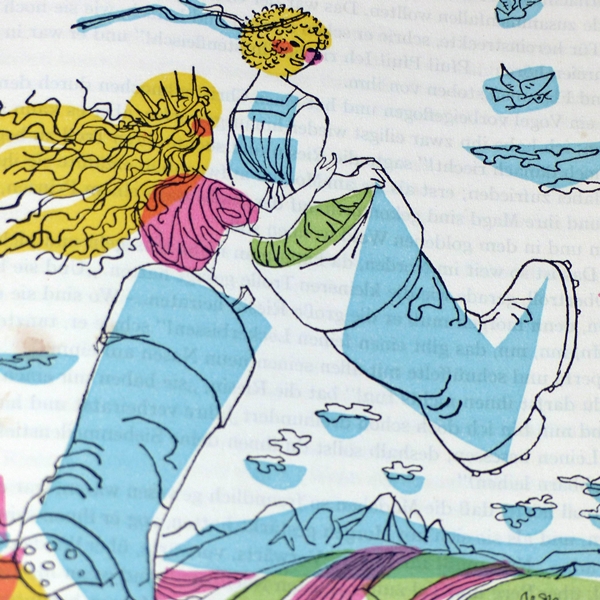 This picture is from my favourite fairy tale books as a child, it was Die schönsten Märchen der Welt für 365 und einen Tag (The most beautiful fairy tales of the world for 365 and one day, edited by Lisa Tetzner). It consisted of four volumes and I can’t find the one with this particular picture in it. It must come from a different fairy tale but the boots are definitely seven-league boots.