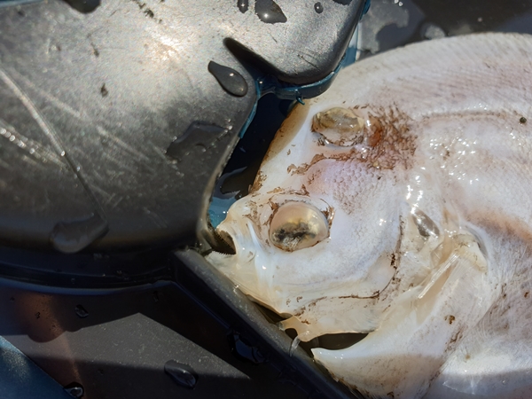 About 20 metres out from the beach my son found a single dead fish while snorkeling and he wanted to bring it on land. I doubted that he could do it without touching it which he was loath to do since he wasn’t wearing any gloves. He took him a while but he did it. It was a small sole. No idea why it had died.