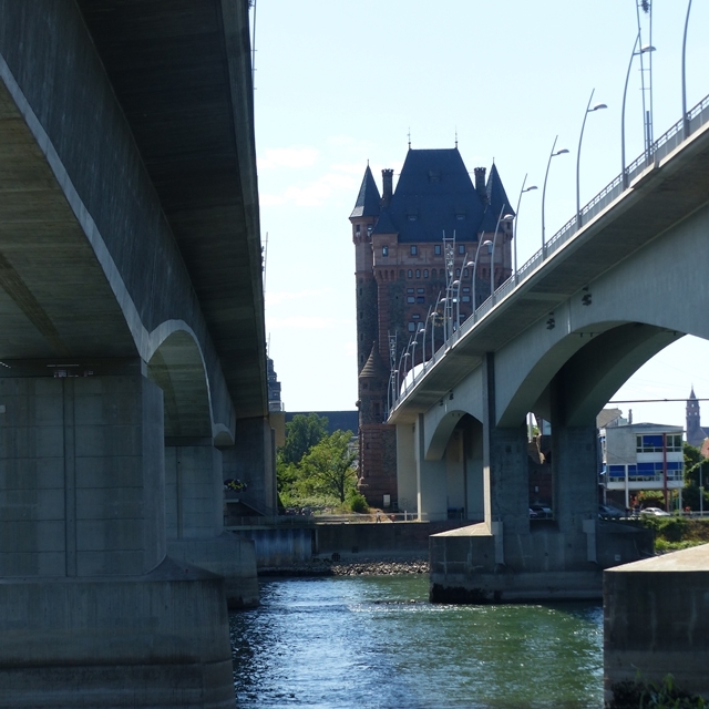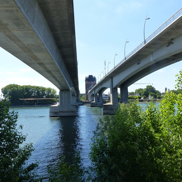 The town on the left side of the river Rhine is called Worms which should explain the title. It used to be just one bridge (the right one) but traffic between the state of Hesse and the Palatium had become so much that they added the left one a few years ago and made each a one way bridge. I’ve just read that the older bridge dating back to 1953 has to be replaced in the next few years as renovation is not possible. However, only the part that actually crosses the water needs to be replaced, the new bridge will fit seamlessly with the old parts on either end. A perspective to look forward to.
