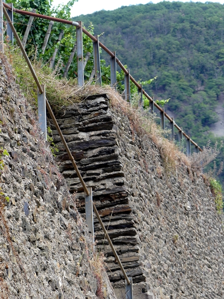 I’ve just come back from the Middle Rhine wine region (between Bingen and Koblenz), part of which is a UNESCO heritage site. It is quite breathtaking to see the steep slope vineyards on either side. Getting up the steps between the different vineyards must be even more breathtaking, literally.