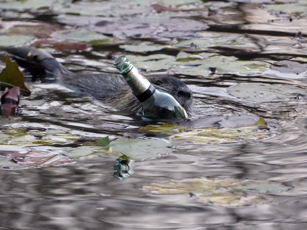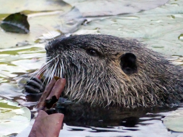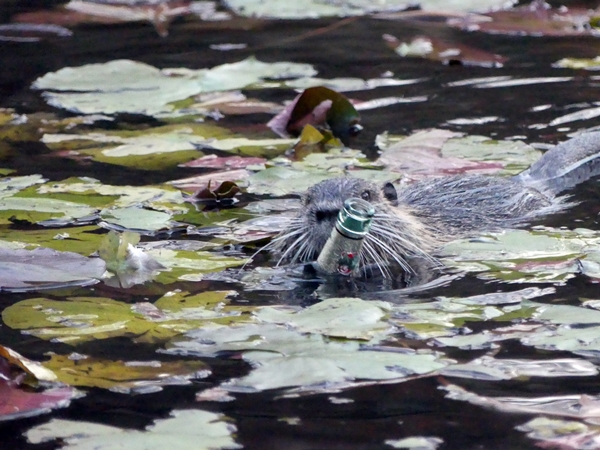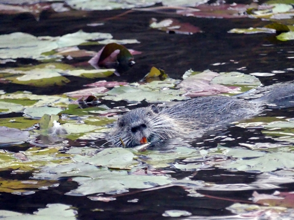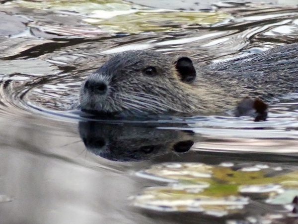 Our grandson showed us this pond where he knew that a nutria lived. It wasn’t shy at all.