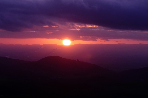 This is the view from the Tromm, one of the highest mountains / hills in the Odenwald towards the west. The Wachenburg, a fortress I normally look up to, can be seen in the middle and beyond is the Rhine Valley. On a clear day one can see the hills of the Palatinate in the distance on the other side of the river.