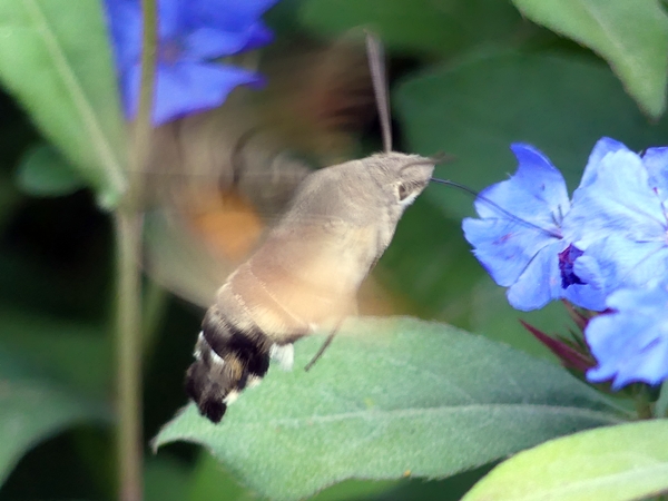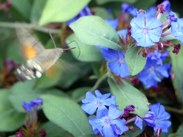 I was taking snaps of pretty blooms on a plumbago bush when something flitted around the periphery of my vision. It tried hard to stay on the periphery. It’s a hawk-moth and has been confused with a humming bird (except there are no hummingbirds in … Continue reading Suprise!
