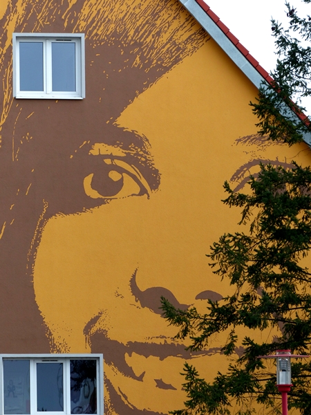 These murals in Lindenfels are badly faded, I enhanced them with photo shop. The left picture depicts the traditional costume of Lindenfels in the Odenwald; the right picture shows young women from Moëlan sur Mer in traditional Breton costume. The two towns are twinned.