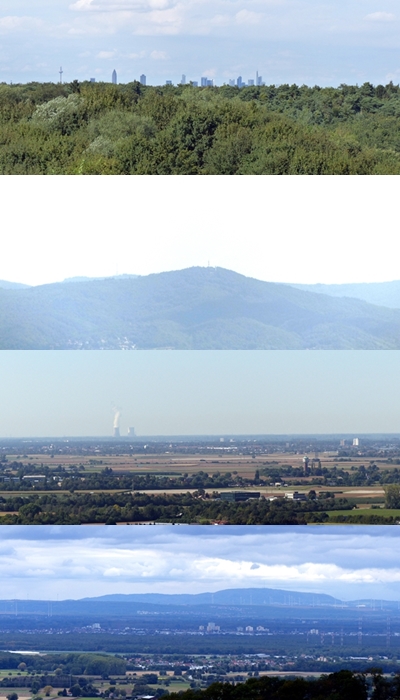 To the North is Frankfurt, to the East is the Odenwald, to the South is more of the Upper Rhine Valley towards Karlsruhe, and to the West is the Palatinate Forest.
