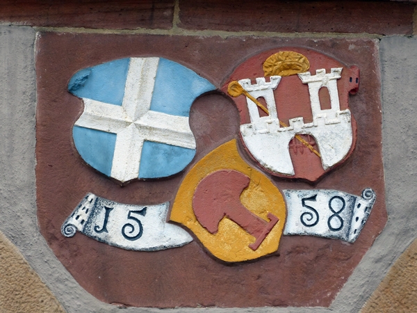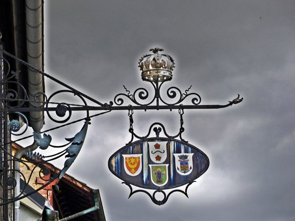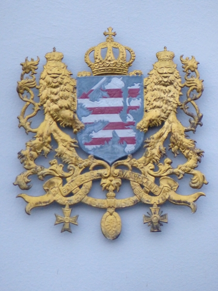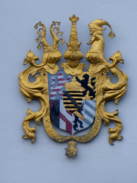 A family crest. — Addendum: I HAVE to add this. I found this crest (taken from a mausoleum) in my archives. I liked the crown and I liked the oaks and acorns and so I picked it for the challenge. However, I have a photo of the whole mausoleum so I checked the inscription out of curiosity. Here it is: