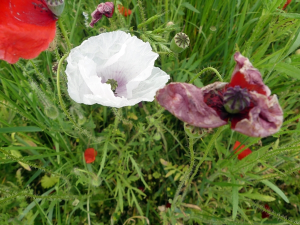 This white poppy, found in the fields next to the usual red poppies, got me going on white flowers for Jude’s colour of the month – white or silver.