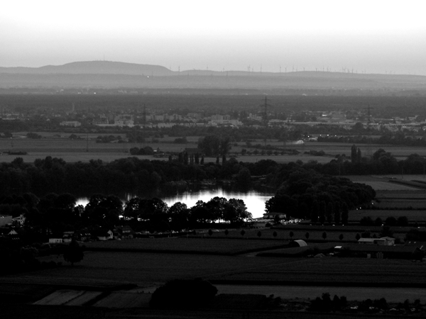 Looking out from the Odenwald in Hesse over the upper Rhine valley. The wind turbines are all on the other side of the Rhine in the State of Rheinland-Pfalz (Rhineland-Palatinate) where politics were much more conducive to develop renewable power alternatives.