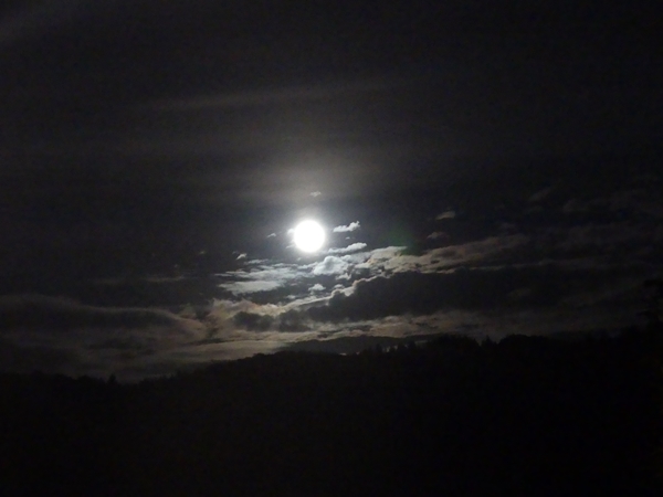 We went out with our grandson this week to catch a glimpse of Tsuchinshan-Atlas. He of the unpronounceable name is a comet, the third brightest in the last 100 years I read. Unfortunately it was cloudy towards the west where it is to be seen (next to the evening star, Venus). But we turned around (and drove a couple of kilometers to get to the other side of the hill we where standing upon) and got to see the supermoon. This phenomenon appears when the moon is the closest to the earth with about 356,500 km. Since this is Weekend Sky I’m showing the moon in the sky including clouds but I will show a moon-centred photo tomorrow.
