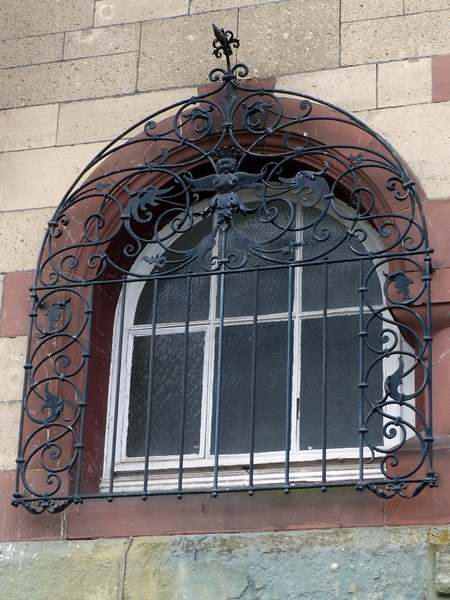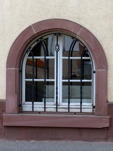 At other times it’s the large statement of a gate – the left one is the gate of the old Jewish cemetery in Hemsbach (the sign says: Be careful – branches might break and fall!), the right one is the side entrance of the Peterskirche in Weinheim.